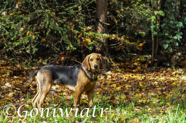 Vater: EGAR z Beskidzkich Wysp FCI, Gebrauchshundeprüfung für Schweisshunde KT I°, Gebrauchshundeprüfung für Wildschweine KD III°, wird jagdlich geführt, Polnischer Champion, Polnischer Jugendchampion, Europasieger, Jugend Klubsieger,